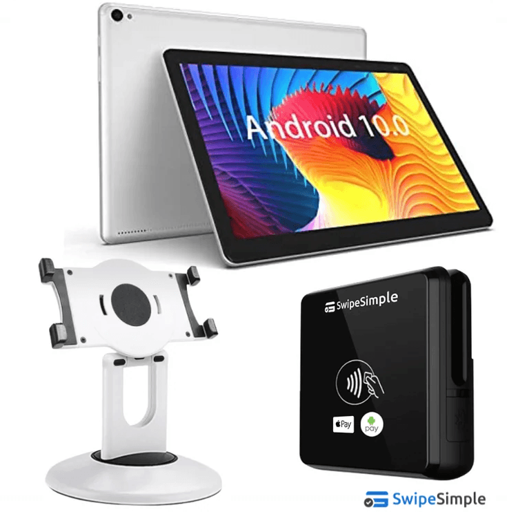 The SwipeSimple Bundle gives you everything you need to start accepting payments with ease—whether you’re on the go or running a small retail setup. This all-in-one solution includes a 10” Android tablet, a sturdy retail kiosk stand, and the SwipeSimple B250 card reader for tap, chip, and swipe transactions.